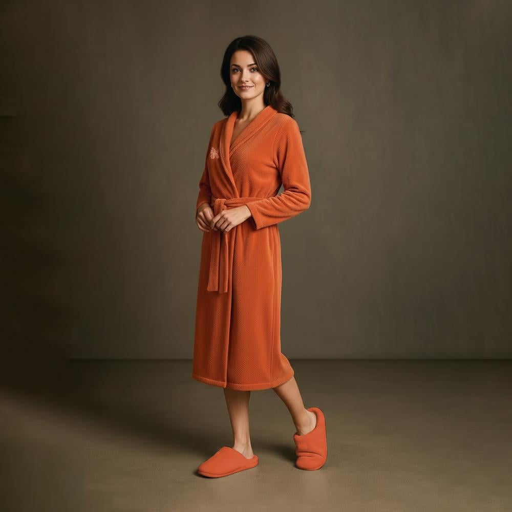 روب حمّام كيمونو جاكار "ذا باترفلاي" للنساء من تريكوتا مصنوع من قطن ميكرو بنسبة 100% ليمنحك إحساسًا فائق النعومة والفخامة. بوزن 360 جرام لكل متر مربع، يوفر توازنًا مثاليًا بين الدفء والتهوية. يتميز بتصميم كيمونو أنيق وتفاصيل جاكار راقية مع جيوب جانبية عملية، مما يجعله خيارًا مثاليًا للاسترخاء والراحة.