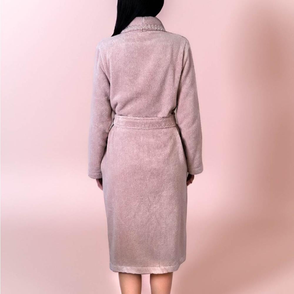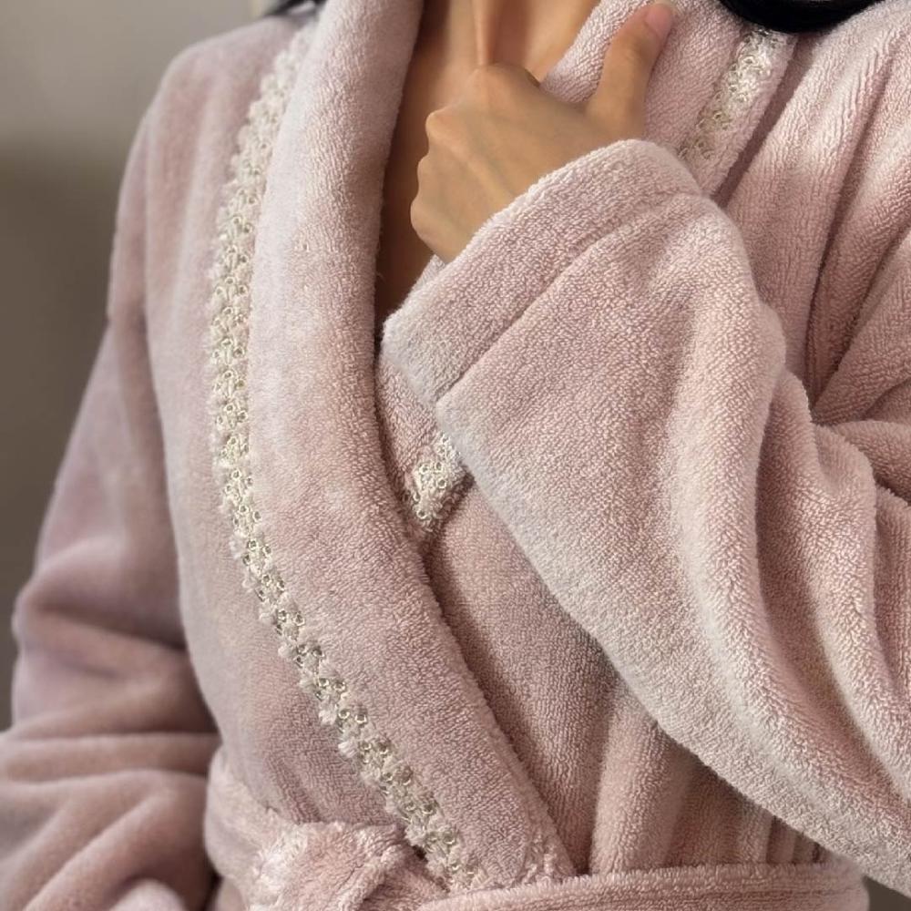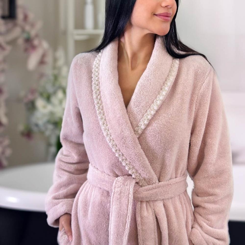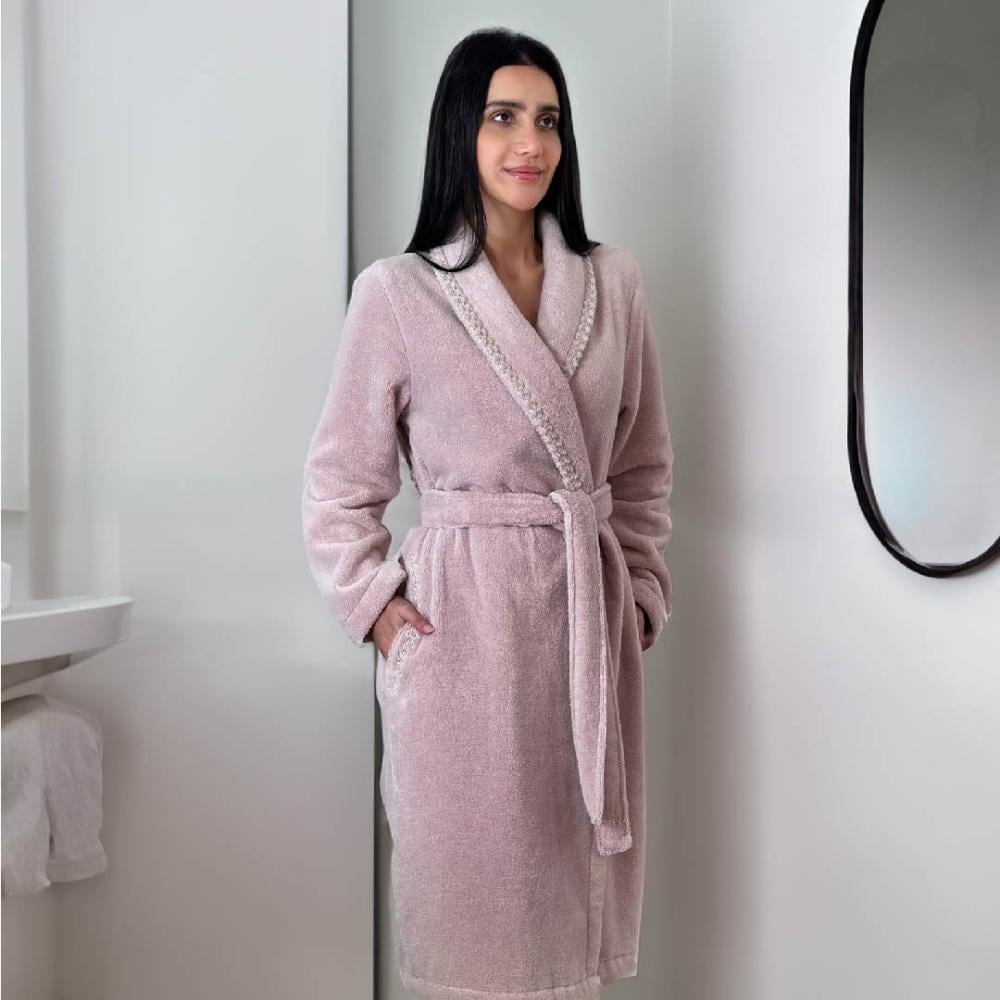 استمتعي بالفخامة مع روب استحمام النسائي جوليا. مصنوع من القطن بنسبة 100% مع نسيج فاخر بوزن 450 جرام في المتر المربع، ويوفر نعومة وامتصاص استثنائيين. تصميم مطرز بأناقة، والحزام القابل للتعديل يجعلها مثالية للاسترخاء براحة وأناقة.